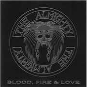 THE ALMIGHTY Blood Fire & Love (1989 UK 10-track vinyl LP, the debut album from the Britsh rock group including the singles Destroyed, Power and Wild & Wonderful. Silver-embossed picture sleeve with lyric printed inner. The sleeve shows some light edgewear and scuffing and the inner has some seam splitting present. The vinyl has a few cosmetic surface scuffs, not affecting play)