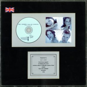 THE CORRS Talk On Corners – Special Edition (Official 1998 UK Atlantic Records in-house 10 x platinum award issued to commemorate sales in excess of 3,000,000 copies of the album. The award features a copy of the CD and album artwork mounted above an authentic, custom engraved silver dedication plaque, with miniature ‘Union Jack’ in the top left corner. This nicely framed and glazed award measures approximately 16″ x 16″ – a truly stunning item for a great album!)