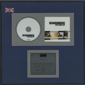 OCEAN COLOUR SCENE North Atlantic Drift (Rare official 2003 UK BPI SILVER award issued to commemorate sales in excess of 60,000 copies of the Sanctuary Records Group album. Features a copy of the CD and sleeve artwork, mounted above a silver engraved dedication plaque with mini Union Jack flag in the top left corner. Measures 16″ x 16″ framed and glazed – a fabulous item to display)