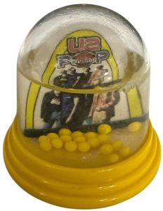 U2 Pop Mart Tour ’97 (Mega rare 1997 UK official promotional-only 3″ high ‘snow-dome’ – yellow based dome with double-sided inset colour band picture and ‘U2 Pop Mart Tour ’97’ logo, with opaque ‘snow’ and miniature yellow balls!)