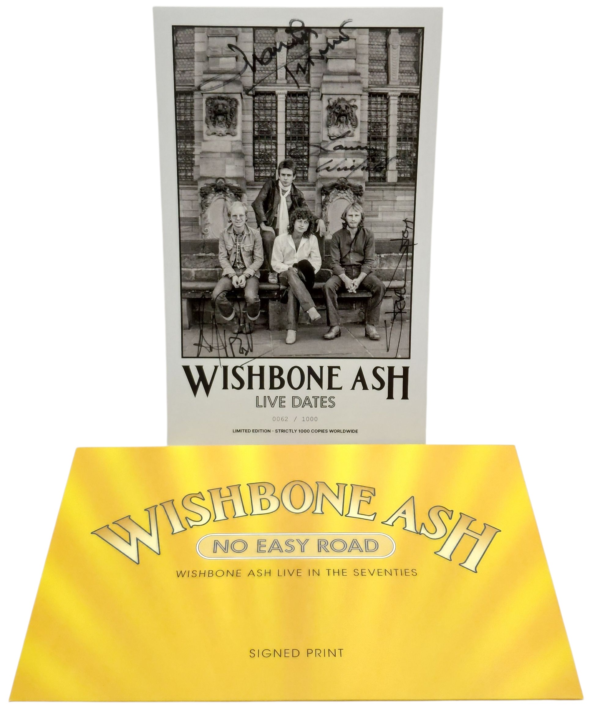 MASSIVE WAGONS Full Nelson (2018 UK/EU limited edition 12-track LP pressed on Clear With Blue Red & White Splatter. This fourth studio album from the English anthemic rockers is also their debut on the Earache Records label and features a collection of quintessentially British hard rock ‘n’ roll tracks and a live energy that is impossible not to get swept up in, mainly thanks to singer Baz Mills’ mesmerising, animated and infectious showmanship andthe band’s musical muscle; including the single ‘Under No Illusion’ and including an AUTOGRAPHED print boldy signed in Gold and Silver Marker pen by all band members. Picture sleeve with lyric inner. The sleeve shows minimal wear. The vinyl is Near Mint ).L7 Scatter The Rats (2019 US 11-track LP pressed on Green Vinyl – Their seventh studio album is also the first in nearly 20 years from the all girl American rock outfit, housed in a glossy picture sleeve which shows just the odd light scuff and has been Autographed by Donita Sparks, Suzi Gardner, Jennifer Finch and Demetra “Dee” Plakas. Includes lyric insert. The vinyl remains in Near Mint condition ).WISHBONE ASH No Easy Road – Wishbone Ash Live In The Seventies (2024 UK limited edition 216-page individially numbered Coffee Table Book. The first official tribute to the band’s life on the road during their zenith years from 1970-1980. This beautifully crafted 216 page set offers a unique glimpse into the band’s journey and features contributions from Martin Turner, Andy Powell, Steve Upton, Laurie Wisefield, and head roadie Mark Emery. Includes many previously unseen photographscaptured by renowned photographers Jill Furmanovsky (Bob Dylan, Led Zeppelin), Michael Putland (The Rolling Stones, Paul McCartney), Barry Plummer (Jimi Hendrix, Bob Marley), and Dick Barnatt (Alice Cooper, Rod Stewart), alongside images of rare memorabilia and tour ephemera. Also contains a bonus 10-track KRO-NCRV concert CD, originally broadcast in Holland during the landmark 1975 Startruckin’ Tour. Limited to just 1000 copies, this example is numbered 62, with a matching numbered photograph, Autographed by all four band members Laurie Wisefield, Andy Powell, Steve Upton, and Martin Turner, stored in a special envelope and housed in a heavy card picture slipcase).STONE SOUR Hello, You Bastards [Live In Reno] (Limited edition 2019 US/EU 17-track double vinyl LP. The first official live album from the the multi-platinum rock group, featuring Slipknot’s Corey Taylor and Jim Root. Includes Through Glass, Bother and Song #3. Top opening embossed gold foil numbered gatefold picture sleeve. Includes a poster, backstage pass, guitar pick, a download card, as well as a fully Autographed setlist. Limited to only 2520 copies – a Near Mint copy).THE DARKNESS Permission To Land (Autographed 2023 UK/EU 20th Anniversary limited edition 10-track LP pressed on Blue Marbled Vinyl. A welcome reissue of the debut studio album by the British glam-rockers, originally released in July 2003. Features the singles Get Your Hands Off My Woman, Growing On Me, I Believe in a Thing Called Love, Christmas Time and Love Is Only A Feeling. Housed in a gatefold picture sleeve with printed innerand poster. The cover has minimal wear and the vinyl has minimal signs of play. This example has been fully signed by the latest line-up of Justin Hawkins, Dan Hawkins, Rufus Tiger Taylor all in silver and Frankie Poullain in gold marker pen across the front).
