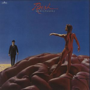 RUSH Hemispheres (Original 1978 UK 4-track LP with ‘brain’ picture labels, the epic sixth album from the Canadian prog trio including the surprise hit single The Trees, the standout instrumental La Villa Strangiato & the 18+ minute strong Cygnus X-1 Book II taking up the whole of side one. The gatefold picture sleeve shows some light spots of wear whilst the vinyl is clean & grades Excellent with only one or two cosmetic scuffs to reveal light play)